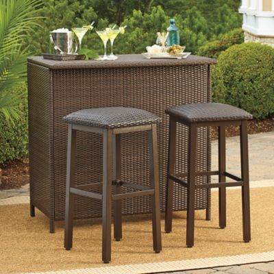 Barrington Wicker Deluxe Outdoor Bar and Barstools - Bed ...