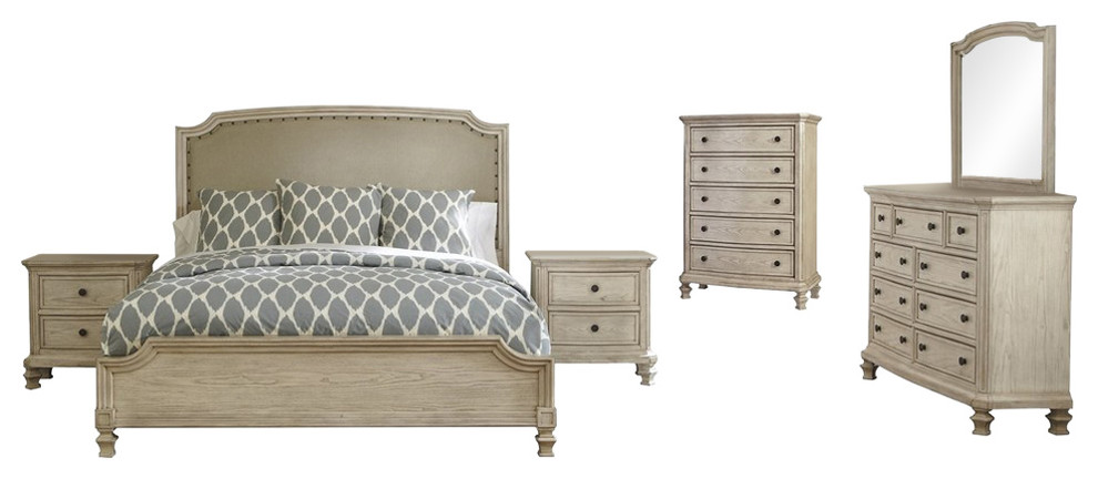Ashley Furniture Demarlos 6 PC Bedroom Set: Queen ... (Alberta Ward) Wrapped in a soothing neutral fabric, the cushioned upholstered panel is punched with nailhead trim for a cool touch of character. With the rustic beauty of the gently distressed parchment white finish perfectly highlighting the elegant look of the shaped fronts and framed pilaster mouldings, the Demarlos Bedroom Set by Millennium features large scaled headboard frames surrounding the nicely crowned textured upholstered cushion with bands and nail accent to. Bedroom Furniture; Nightstands; Write a Review.