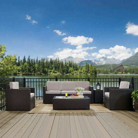 Crosley Furniture - Palm Harbor 5 Piece Outdoor Wicker ... (Louisa Patton) This set is sure to provide lasting enjoyment in any outdoor setting. Let your worries fade away as you doze off in our UV/fade resistant cushions. It comes with a chair, a sofa and a table, giving you a lovely spot to relax in your yard or balcony.