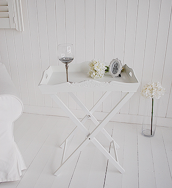 A white butler tray bedside table. Bedroom Furniture