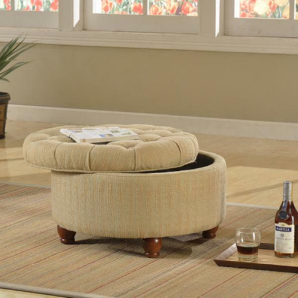 Beige Large Tufted Round Storage Ottoman Durable Home ...