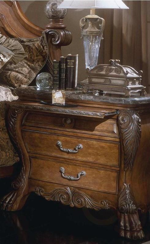 Eden's Paradise Bedroom exudes Old World European styling and is beautifully crafted in Poplar solids and Cherry veneers showing exquisite details with dramatic carvings throughout the collection.bedroom, bed, dresser, mirror and chest Marble accents, beveled glass, and custom hardware add to the beauty and charm of this collection.